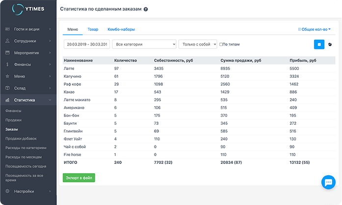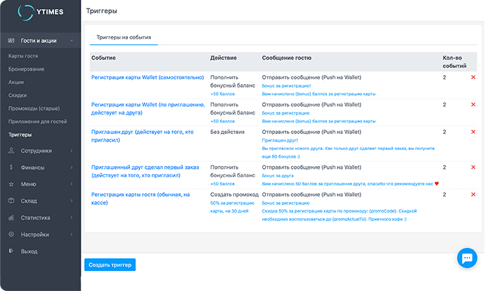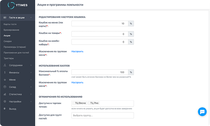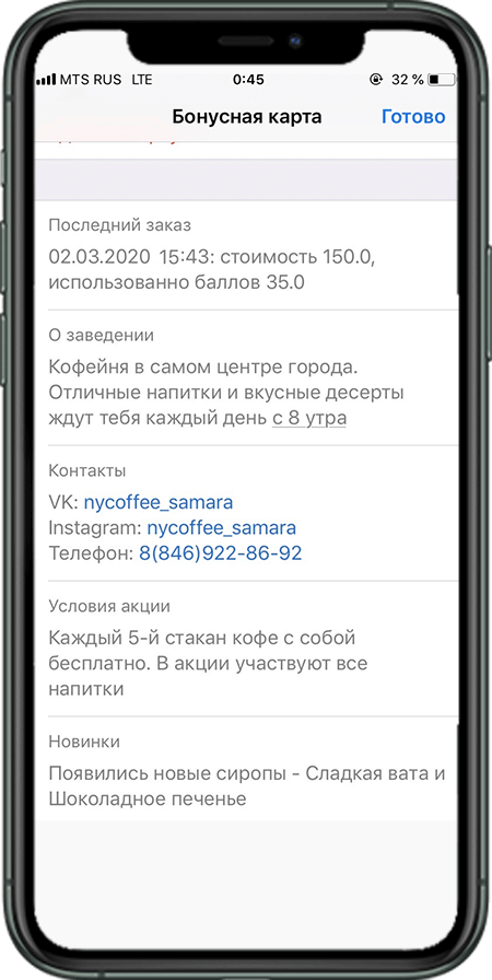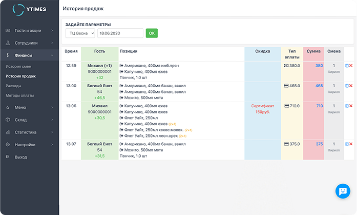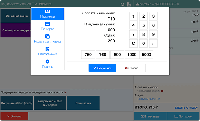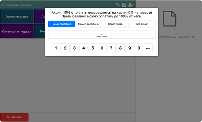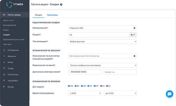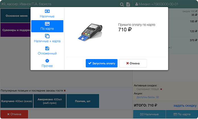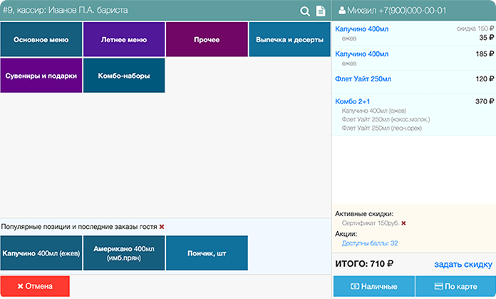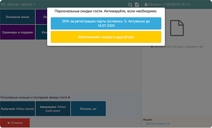 Персональные скидки, автоматические скидки, промокоды, сертификаты, абонементы на несколько напитков/блюд